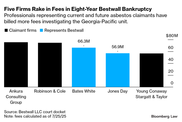 Bestwall is the first asbestos bankruptcy to attempt the controversial legal strategy also known as the Texas Two-Step, which involves a divisional merger and has prompted extensive litigation. Such cases often lead to creditor attorneys billing more than debtors’ attorneys because they spend time investigating assets, Keach said.
