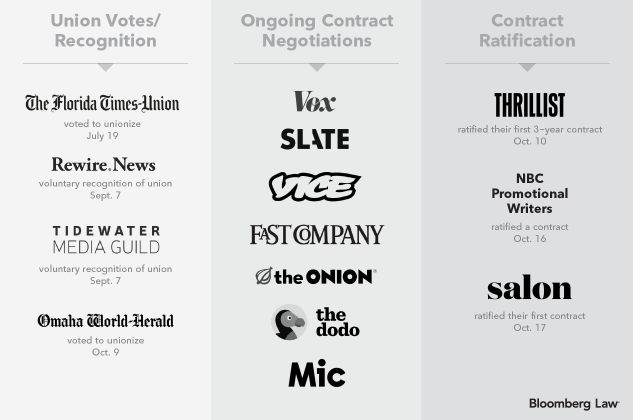 Journalists in both traditional print media and digital-first companies are looking to bolster themselves against industry tumult by turning to union protection.