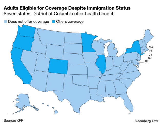 Fourteen states and the District of Columbia provide comprehensive state-funded coverage for undocumented children. Seven states, including California, Illinois, and New York, go a step further, extending a state-funded health benefit to income-eligible adults regardless of immigration status, according to KFF.