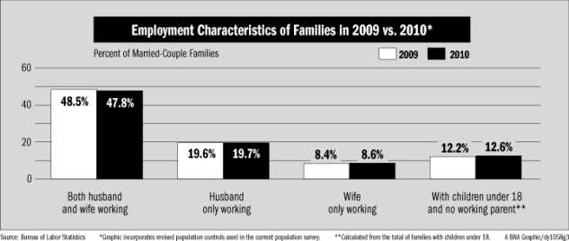 The 12.4 percent was up 0.4 percentage point from 2009, when it was 12.0 percent. BLS said the proportion represented a total of 9.7 million families who had at least one unemployed member during 2010, about 314,000 higher than the 9.4 million in 2009.