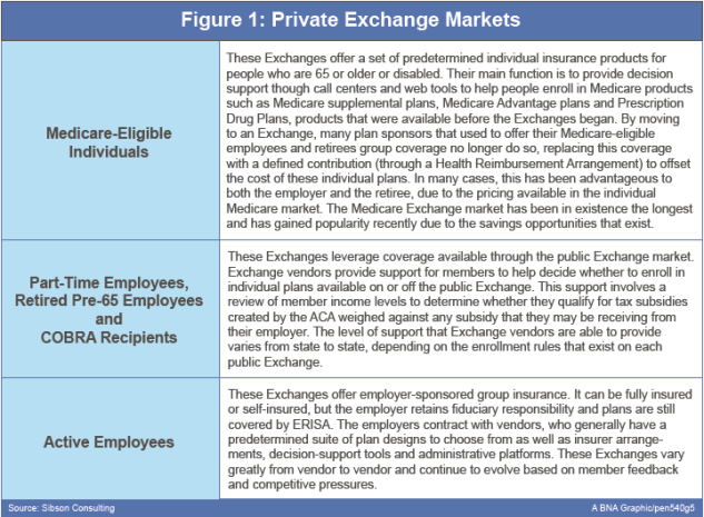 Private Exchanges for active employees have existed for several years. One of the first entries that gained major press coverage was a fully insured insurance model, the Aon Hewitt Corporate Exchange, which debuted in 2013 and was quickly adopted by several large corporations including Sears Holdings and Darden Restaurants.