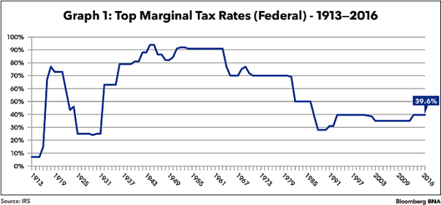 Our recent history—since the Bush I presidency—has involved more moderate swings in tax rates than most of the 20th Century. However, this seeming trend toward stability is also an illusion. More than ever before, control of Congress and the Presidency can be shifted by a small number of voters in a small number of Congressional districts. In 2016, a shift of fewer than one-half of one-percent of all voters, strategically placed, could have given Democrats control of both houses of Congress as well as the White House. Given the recent exercises of the “nuclear option” by the Senate to eliminate filibusters of presidential appointments, the possibility exists that the legislative filibuster will disappear as well, and a single party controlling both branches of government by even the slimmest margin could control tax rates with no input from the other party. With the two parties espousing significantly different ideas about economic efficiency and fairness, the recent relative stability is no guarantee of future stability in income tax rates.