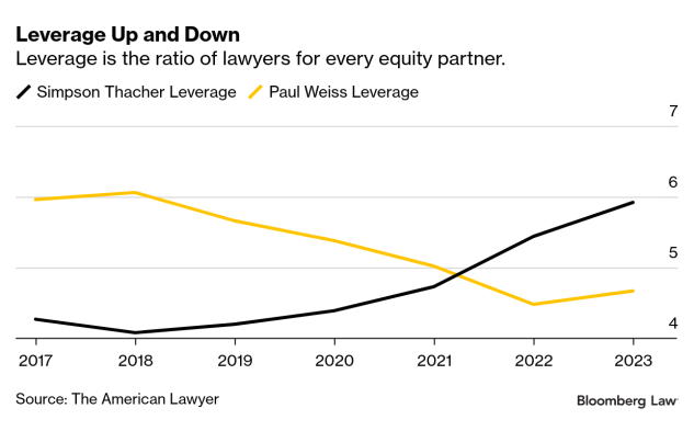 Paul Weiss has seen its leverage move in the opposite direction in recent years.