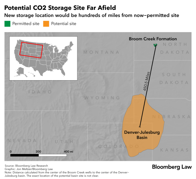 Instead of routing the pipeline to North Dakota, the company is now looking at routing it to the Denver-Julesburg Basin, land home to oil and gas wells that’s nestled in Wyoming, Colorado, Nebraska, and Kansas. The company’s plans to route the pipeline to North Dakota hit a massive roadblock when South Dakota enacted a law making it illegal to use eminent domain—the process of taking a landowner’s property for public use—for carbon dioxide pipelines.