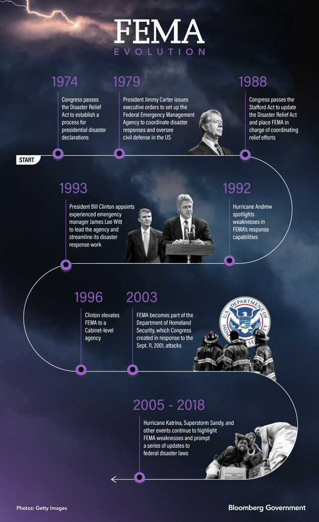 Today’s FEMA looks little like the agency created in 1979, when President Jimmy Carter sought to streamline federal disaster relief and coordinate civil defense as the Cold War dragged on.