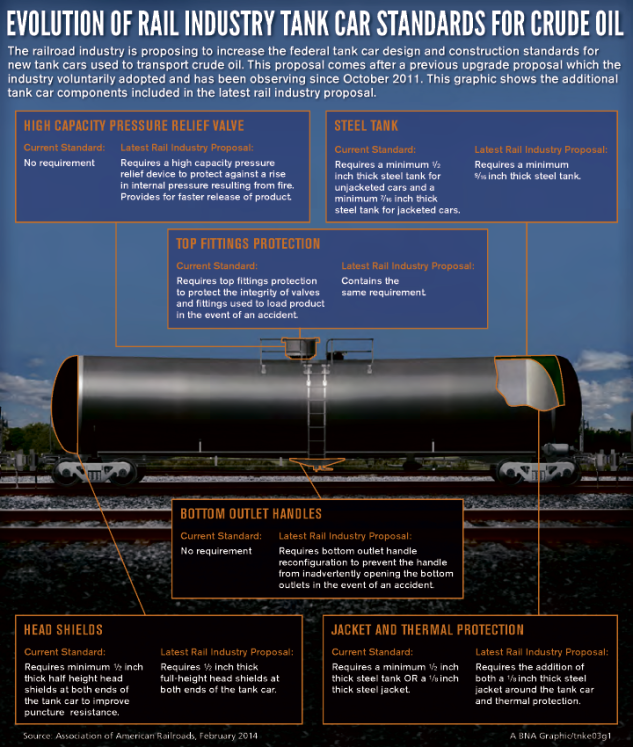 The Pipeline and Hazardous Materials Safety Administration, in conjunction with the Federal Railroad Administration, is working on a proposed rule that would update federal design standards for tank cars, commonly known as DOT-111 cars, that are used to carry crude oil, ethanol and other flammable liquids (see related