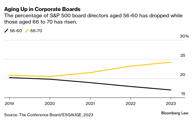 - The share of S&P 500 directors in their late sixties has risen