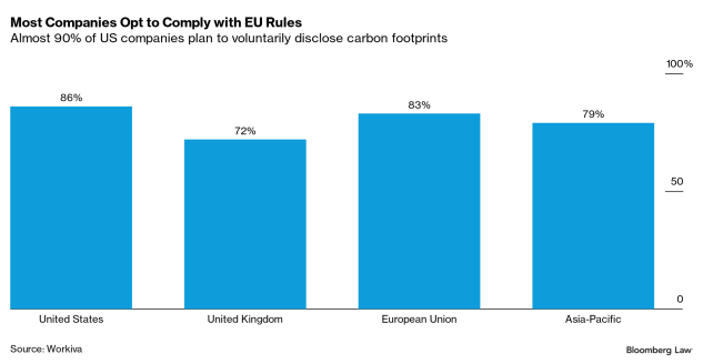In the US, 86% of respondents in the survey released Tuesday said they plan to voluntarily comply with all or part with Europe’s Corporate Sustainability Reporting Directive even though they don’t have to.