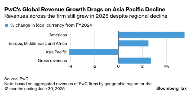 PwC’s global assurance practice, including its audit business, saw revenue increase 1.7% in local currency. Its tax practice nudged up 1% with clients seeking support for international tax rules and shifting tariff policies.