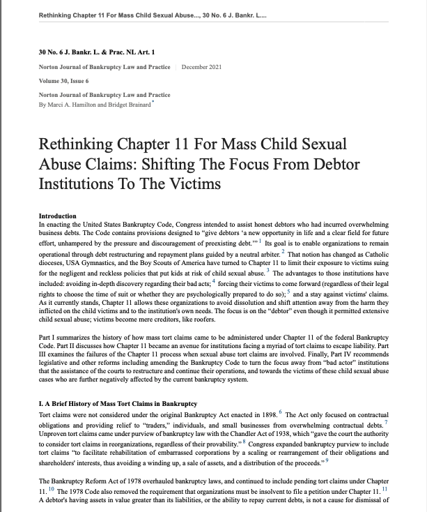 Bankruptcy courts today are being asked to do something they were never designed to do: Handle some of the most significant and most sensitive mass tort cases in the country, including the cases involving Boy Scouts of America, USA Gymnastics, and the Roman Catholic Diocese of Rockville Centre.