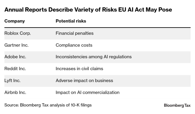The EU AI Act, which entered into force in August, is an addition to an existing list of technology and data privacy-related laws that businesses have named in their reports. Its first provisions blocking overly risky uses of AI in the EU took effect in February.
