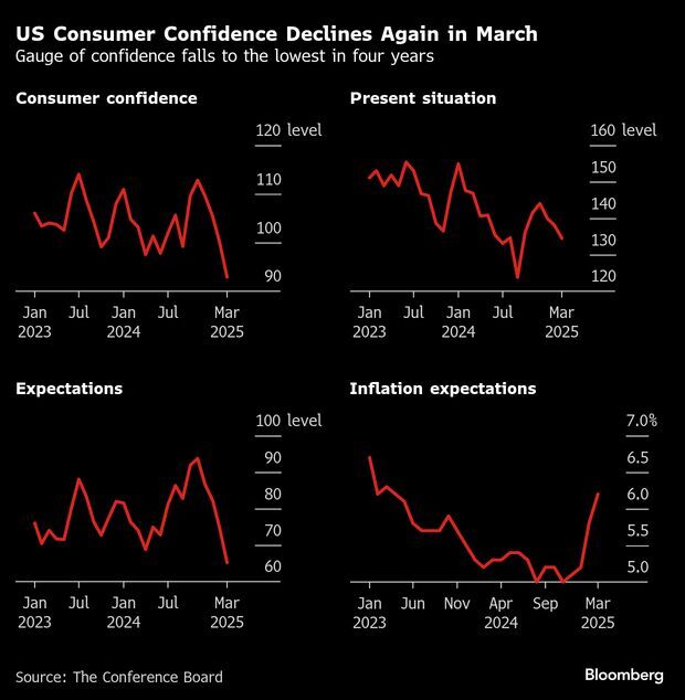 Surveys that take the pulse of American consumers have been trending downward, so there’ll be a lot of attention next week when The Conference Board releases its update.