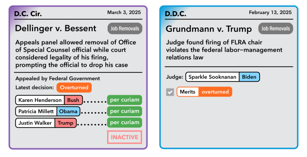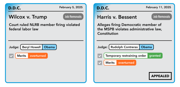 The US Court of Appeals for the District of Columbia Circuit heard oral argument on whether to stay Wilcox and Harris’ district court wins while it considers the administration’s argument for dismissing them. The appeals court’s ruling is pending. The merits of the case are set to be fully briefed in April.