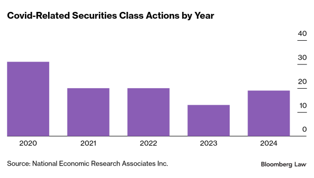 The impact of the Covid-19 pandemic, even as it recedes into history, is expected to provide fodder for new securities litigation in the year ahead after buoying activity in 2024.
