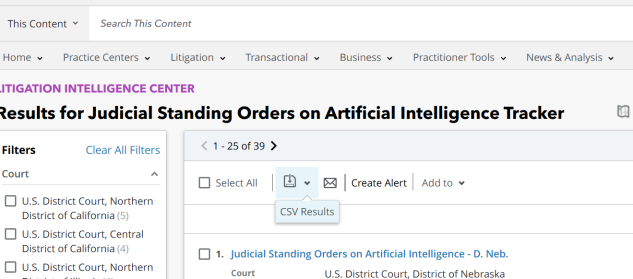 To replicate the research that was used for this article and determine which federal courts have issued standing orders on AI: