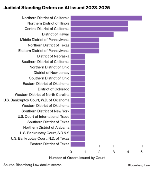 To stay up to date on the judicial response to artificial intelligence use, follow along with Bloomberg Law’s Judicial Standing Orders on AI Tracker.