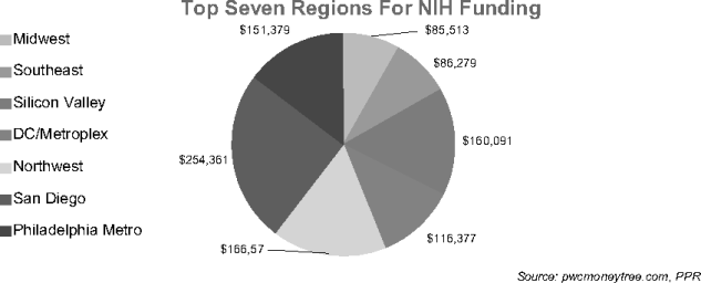 Boston and San Francisco, considered the dominant biotech markets in the United States, were at the forefront of this industry back in the 1970s, thanks to their strong research institutions and highly educated workforces. Today they rank as top recipients of NIH funding and biotech venture capital (VC) spending. From 1995–2008, Silicon Valley and New England, with San Francisco and Boston as the pillars of those regions, received 43 percent of all biotech VC spending, according to PricewaterhouseCoopers (PwC). This trend should persist into the foreseeable future, because they continue to be anchored by strong research universities and colleges as well as by hospitals.