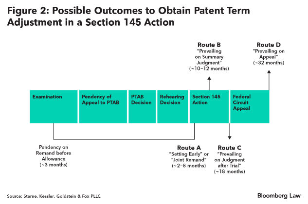 As shown in Figure 2 below, applying the patent term adjustment framework of section 154(b)(1)(C) to the likely timeline of a section 145 action, provides several opportunities to obtain positive term adjustment.