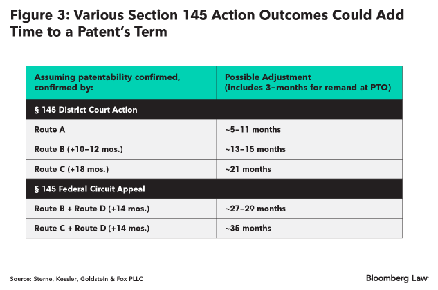 As shown below, these various outcomes from a section 145 action could add several months to years to a patent’s term.