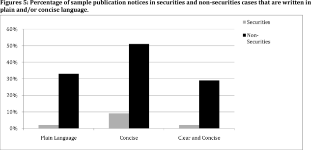 A few findings from the FJC study are important to note here. Some securities practitioners mistakenly believe that a simple notice is not necessary for an educated class. The study on the FJC’s securities notices found that even shareholders were less likely to understand a legalistic class action notice than a plain language notice.