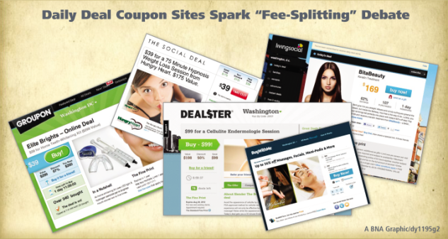 “Fee splitting provisions were enacted primarily to ensure no inappropriate sharing of fees occurred between health care professionals or cross-referrals of patients,’’ LivingSocial said in a written statement provided to BNA. “These provisions were enacted to protect potential patients from referrals made based on another medical professional’s financial interests, rather than the patient’s clinical needs.’’