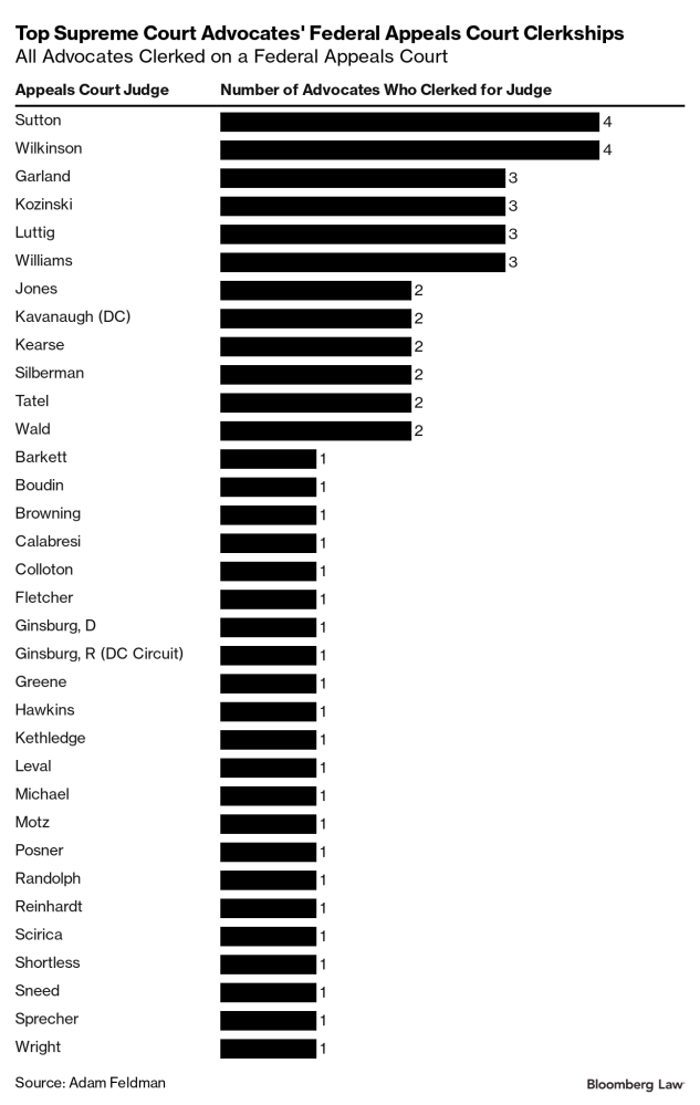 We’ve now narrowed Supreme Court repeat players to mainly men who attended top-tier law schools. There are also specific lower-court and Supreme Court clerkships that top advocates share.