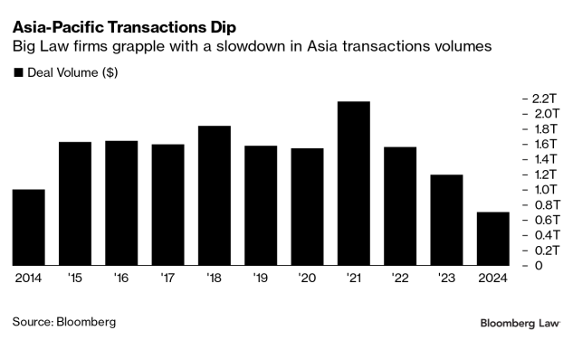 Big Law’s near-term ambitions in the region have been slowed by a downturn in the deals market.