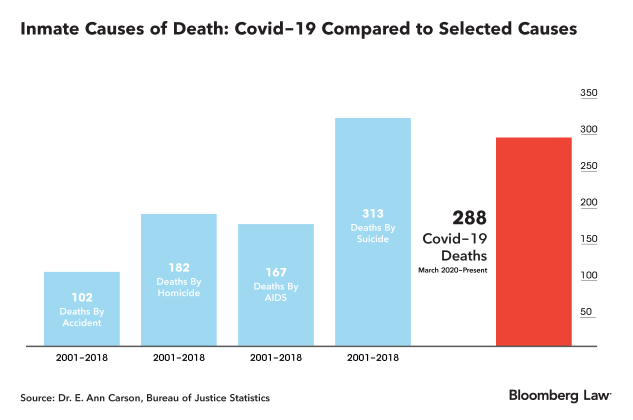 In contrast, in less than two years, Covid-19 has killed at least 288 inmates (not including seven staff and 18 inmates in private facilities).