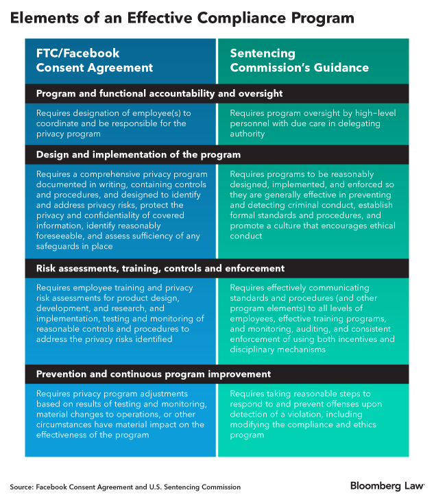 With the Facebook case, the FTC has the opportunity to formally set a precedent to apply the federal standards on effective compliance programs to privacy. Privacy, security and compliance can’t operate in silos. The federal guidance provides a framework for consistent program standards across these functions that promotes ethics, compliance with laws, and a culture of awareness and commitment at all levels.